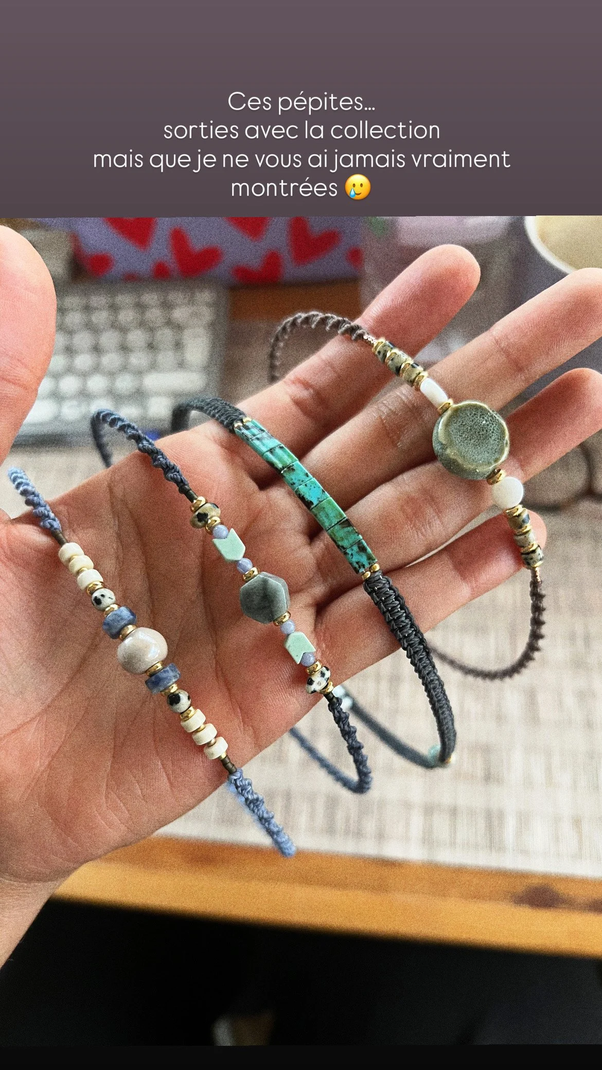 • Matériaux : Perles Heishi, pierres naturelles fines, perles de finition dorées.